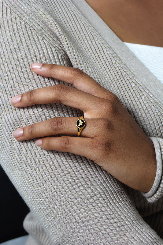 Gold Vermeil Sterling Silver Signet Ring with Butterfly Black Onyx Gemstone