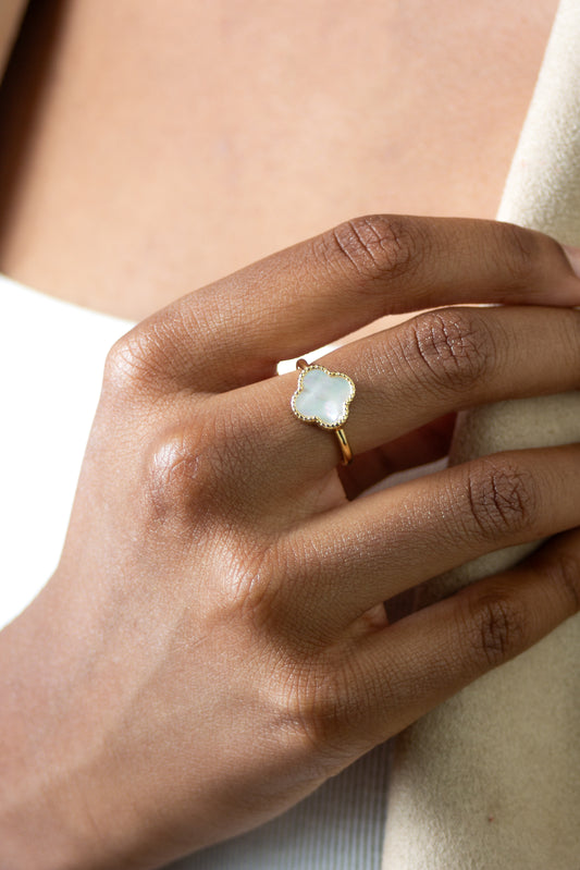 4 Leaf Clover Ring with Mother of Pearl