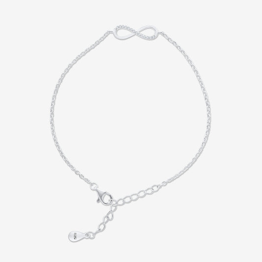 Sterling Silver Rhodium Plated Half CZ Infinity Bracelet
